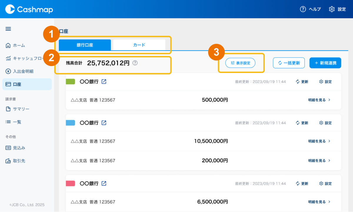 ① 銀行口座とカードの表示切り替え