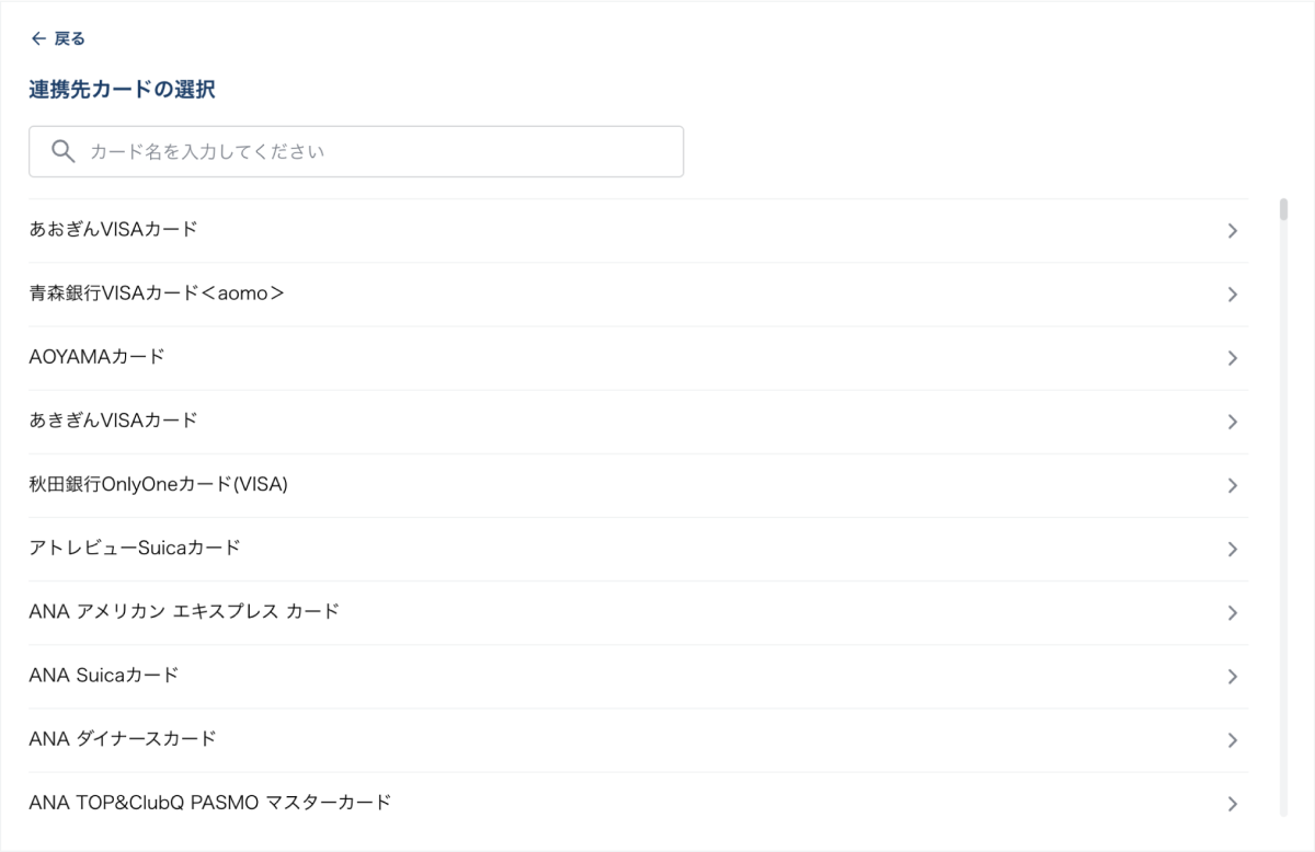 3. カード名検索を使って、連携するカード情報を探す