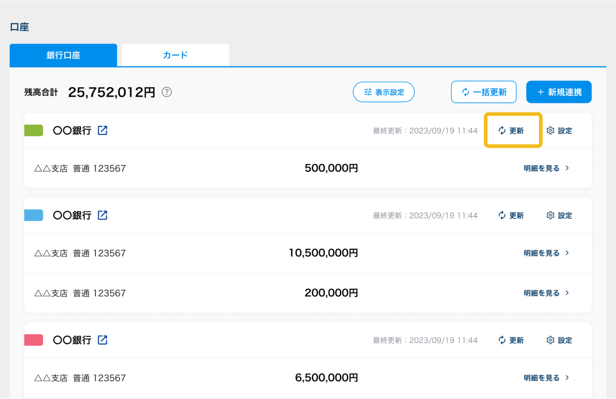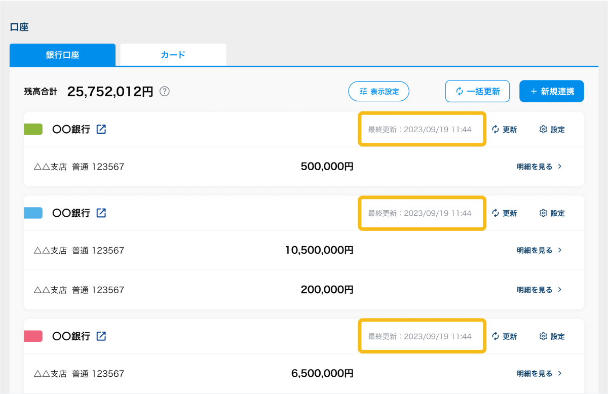 ※更新にかかる時間は、対象口座・カードによって異なります。