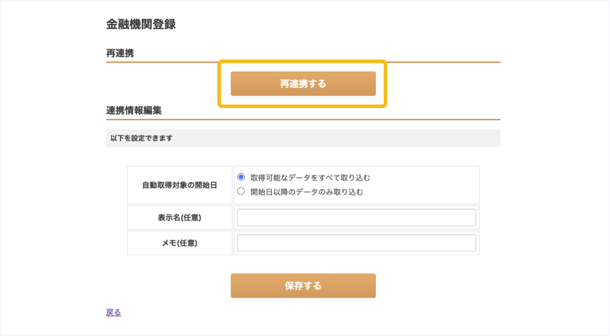 3. 画面の説明に従って「再連携する」を押す